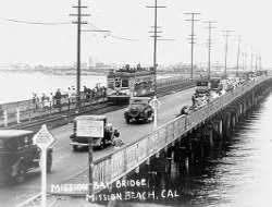 - In the year 1915, John D. Spreckels built a 1,500 feet wooden bridge connecting Ocean Beach with Mission Beach. It was for the use of trolleys so as to see to the development of the communities connecting Ocean and Mission beach. It was later demolished in January 1951 and as a result, cutting off through traffic to Ocean Beach.